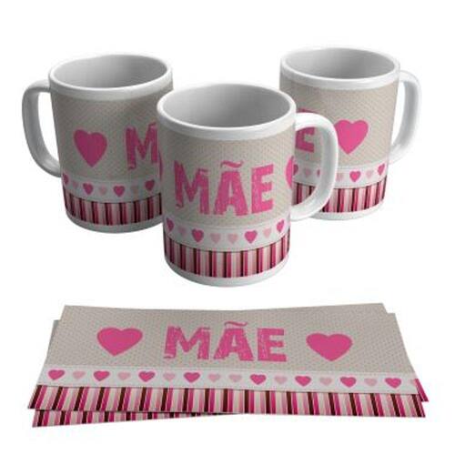 Caneca personalizada de porcelana de alto brilho, com interior e alça branca com linda Estampa do dia das Mães.