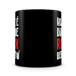 Caneca personalizada de porcelana de alto brilho, interior e alça 100% preta, com divertida frase.