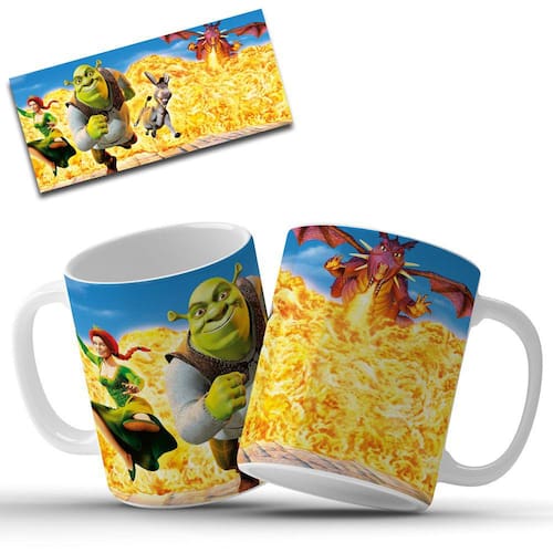 Caneca Personalizada Sherek e Fiona em Cerâmica 325ml