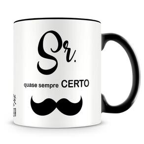 Caneca personalizada de porcelana de alto brilho interior e alça preta, com estampa Sr. Quase Sempre Certo.