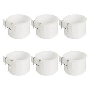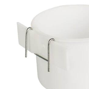 Caneca plástica com gancho em arame, prática para fixar em gaiolas e facilitar o acesso dos passarinhos à água ou alimento. Fabricada em resina plástica resistente, é fácil de limpar e durável.