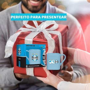 Caneca porcelana xícara quadrada 220ml azul café chá grêmio oficial premium presente