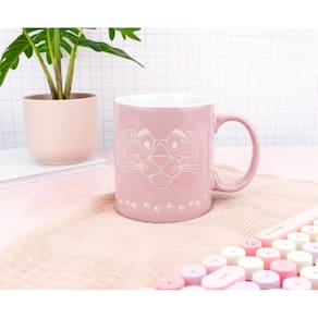 — Design e tamanho retrô: caneca de cerâmica de 20 onças com acabamento resistente à cera com o logotipo e o rosto vintage da Pantera Rosa em tons fortes de rosa e preto; perfeita para beber diariamente — PERFEITA PARA A