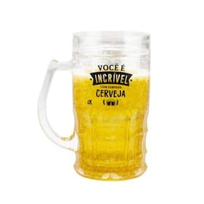 Caneca de plástico de 400 ml escrito "Preciso Abastecer Cerveja". Caneca possui revestimento de líquido na cor de cerveja, como se a caneca estivesse sempre cheia de bebida. Coloque no freezer por algumas horas para tomar a bebida muito mais gelada. Material: plástico