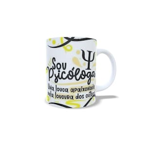 Caneca psicóloga divertidamente de porcelana Atenção esse anúncio é referente a apenas uma caneca, as imagens são de vários ângulos.