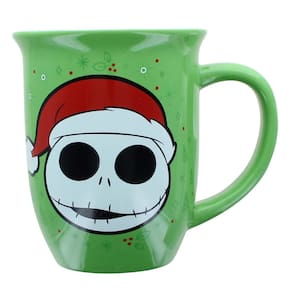 - DESIGN FESTIVO: A caneca verde festiva apresenta Jack Skellington vestido de Papai Noel.