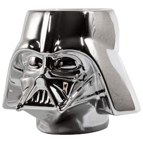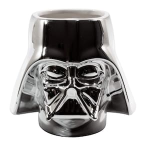 Beba seu café com estilo com a caneca Star Wars Darth Vader em destaque. Esta é uma caneca extremamente legal e charmosa que retrata o capacete de Lord Vader do anime Star Wars. O copo é feito de 100% cerâmica, moldado e cromado em prata para parecer o capacete do Lorde Vader de StarWars. A caneca é brilhante para combinar com o reflexo de objetos como a coisa real. Deslize seus dedos ao redor da alça oculta da caneca Star Wars para desfrutar de goles de sua bebida favorita com estilo. Uma ótima adição à sua fantasia de Star Wars e um presente perfeito para qualquer fã de quadrinhos de Star Wars. Não deixe de molho ou coloque na máquina de lavar louça, apenas lave à mão!