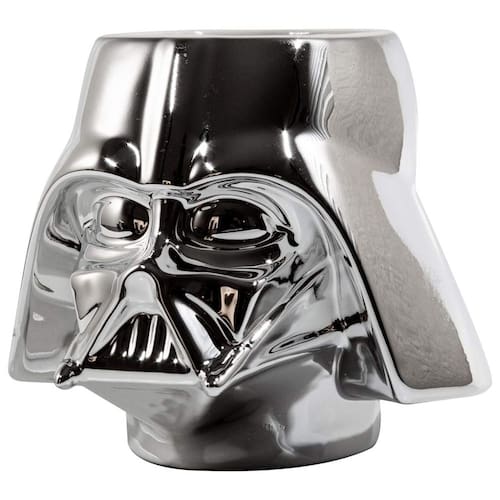 - Acabamento cromado: O revestimento cromado prateado dá à caneca uma aparência elegante e brilhante, espelhando a superfície reflexiva do capacete de Vader