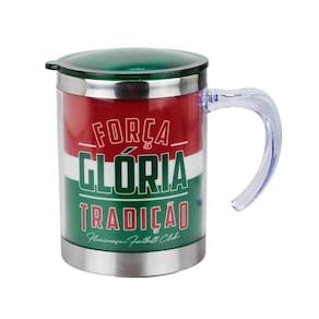 Caneca Térmica Com Tampa 450ml - FluminenseCaneca Térmica Com Tampa 450ml - Fluminense Esta caneca do Fluminense é ideal para tomar aquela cerveja bem gelada.A caneca tem revestimento de plástico e interior de inox, acompanha uma tampa.Preserva a bebida na temperatura por muito mais tempo.Detalhes:Material: plástico e inox;Capacidade: 450 ml;Peso: 220 gramas;Altura: 11 cm;Largura: 8,5 cm;Comprimento: 12 cm.
