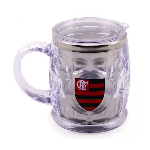 Caneca Térmica Com Tampa Flamengo 500ml Cristal Esta caneca do Flamengo é ideal para tomar aquela cerveja bem gelada, a caneca tem revestimento de plástico transparente e interior de inox, acompanha uma tampa. Preserva a bebida na temperatura por muito mais tempo, além de ter uma capacidade de armazenamento muito maior que canecas convencionais. Material: plástico e inox; Litragem: 500 ml