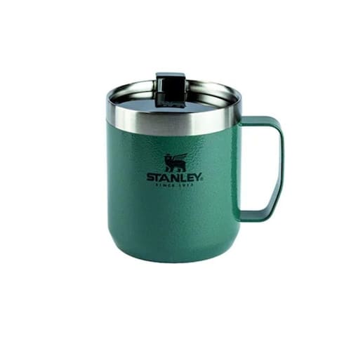 Caneca Termica Stanley Camp Mug 350ml Café Chá Hammertone Green Mantem 1,5 horas: QUENTE 3 horas: GELADO 15 horas: COM GELO Há uma razão pela qual chamamos essa caneca de Lendária. É resistente com o isolamento a vácuo de parede dupla Stanley, para que suas bebidas favoritas permaneçam quentes ou frias por mais tempo. A tampa Tritan de encaixe também evita respingos para que você possa beber facilmente na cozinha, no trabalho ou ao redor da fogueira. Aço inoxidável 18/8, livre de BPA Tampa para beber Tritan Peso: 300g Dimensões: 11cm x 12cm x 10,2cm
