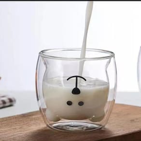 Caneca Urso Dupla Camada Vidro Resistente Ao Calor 250m