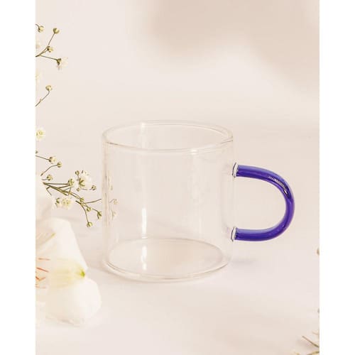 Caneca Vidro Boro Alça Azul 100ml Mimo Style