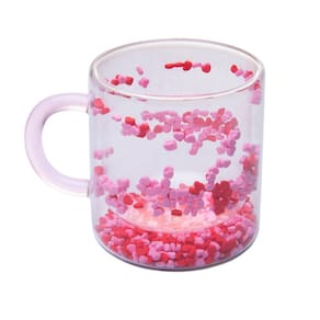 Caneca vidro heart 300ml parede dupla com alça rosa coração Fabricada em vidro borossilicato de parede dupla, mantém suas bebidas quentes por mais tempo, sem transferir calor para a superfície externa da caneca, proporcionando conforto ao segurar. A caneca é projetada com uma alça ergonômica em rosa, garantindo um manuseio seguro e confortável. O padrão de corações vermelhos e rosa adiciona um toque de elegância ao design. O vidro borossilicato é conhecido por sua resistência a choques térmicos e impactos, tornando a caneca mais durável e menos propensa a quebras em comparação com vidros comuns. Pode ser utilizada para uma variedade de bebidas quentes e frias, incluindo café, chá, chocolate quente, sucos e até mesmo sobremesas geladas, adaptando-se facilmente às suas preferências.
