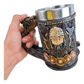 Caneca Viking Decorativa Cerveja Chopp Presente Coleção Caneca feita em resina copo de aço inox