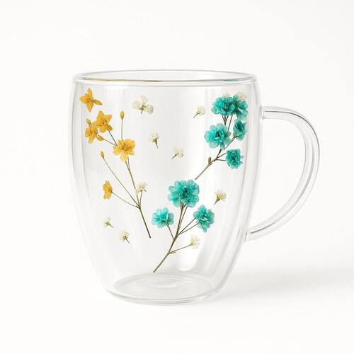 A caneca de vidro dupla parede com pétalas de flores é uma peça que une elegância e praticidade, transformando o momento de saborear sua bebida favorita em uma experiência visual encantadora. Com capacidade para 350ml, esta caneca é ideal para chás, cafés, cappuccinos e outras bebidas quentes ou frias.