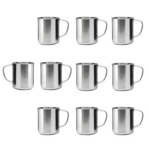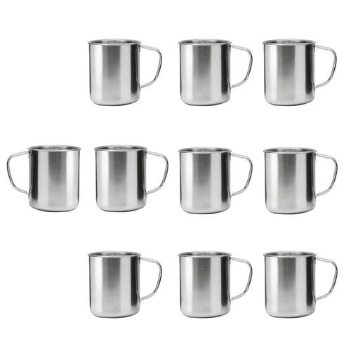 Contem: 10 Canecas Volume: 250 ml Medidas: 11 x 8 cm Material: Aço inoxidavel