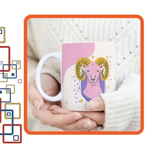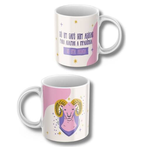 Caneca Xicara de Café ou Chá de Porcelana Personalizada Signos Aries Divertida Engraçada para Presente Criativo 325ml