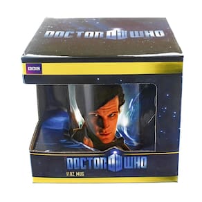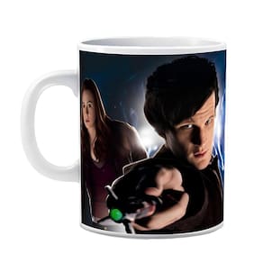 Caneca Doctor Who com o 11º médico na frente. Cerâmica.
