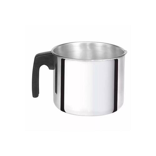 Canecão de alumínio com orla (dobra na boca) com cabo de baquelite. Ideal para armazenamento de líquidos.