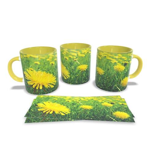 Caneca personalizada de porcelana de alto brilho, com interior e alça Amarela com linda Estampa da Coleção Flores.