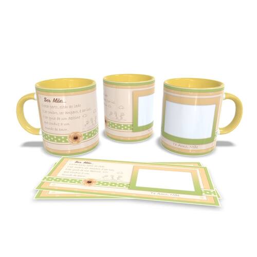 Caneca personalizada de porcelana de alto brilho, com interior e alça Amarela com linda Estampa da Coleção dia das Mães.