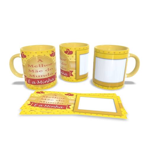 Caneca personalizada de porcelana de alto brilho, com interior e alça Amarela com linda Estampa da Coleção dia das Mães.