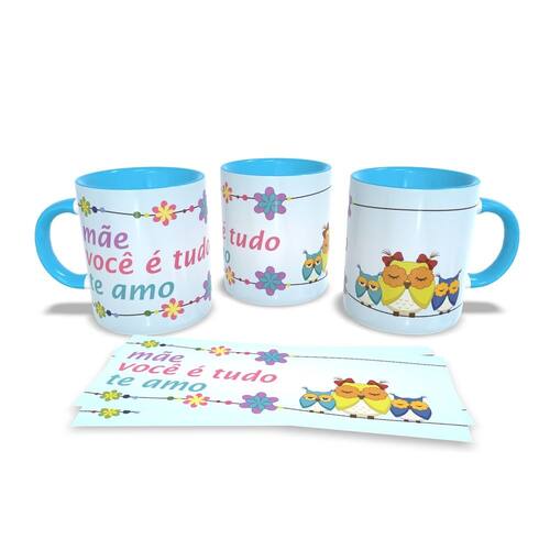 Caneca personalizada de porcelana de alto brilho, com interior e alça Azul com linda Estampa da Coleção dia das Mães.