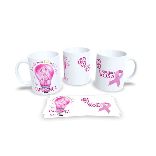 Canecas Branca de Porcelana Personalizadas Outubro Rosa