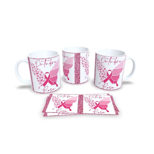 Canecas Branca de Porcelana Personalizadas Outubro Rosa