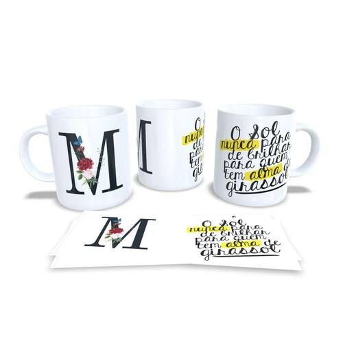 Caneca personalizada de porcelana de alto brilho, com interior e alça branca com linda Estampa Alfabeto Floral Black.