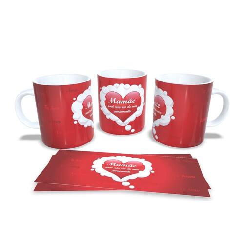 Caneca personalizada de porcelana de alto brilho, com interior e alça branca com linda Estampa da Coleção dia das Mães.