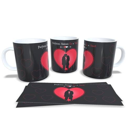 aneca personalizada de porcelana de alto brilho, com interior e alça branca com linda Estampa da Coleção Dia dos Namorados.