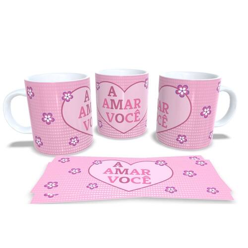 aneca personalizada de porcelana de alto brilho, com interior e alça branca com linda Estampa da Coleção Dia dos Namorados.
