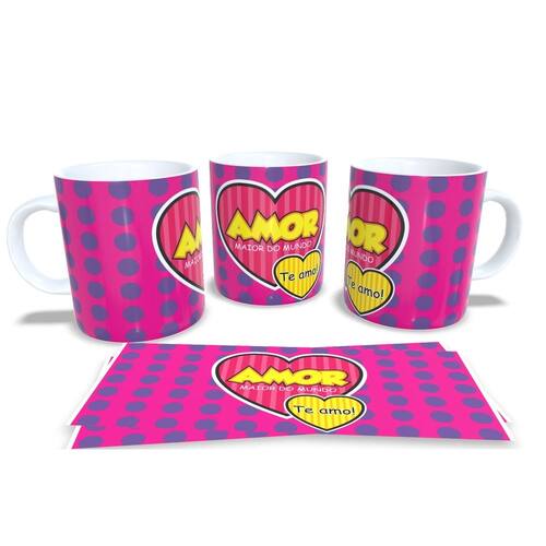 aneca personalizada de porcelana de alto brilho, com interior e alça branca com linda Estampa da Coleção Dia dos Namorados.