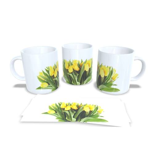 Caneca personalizada de porcelana de alto brilho, com interior e alça branca com linda Estampa da Coleção Flores.