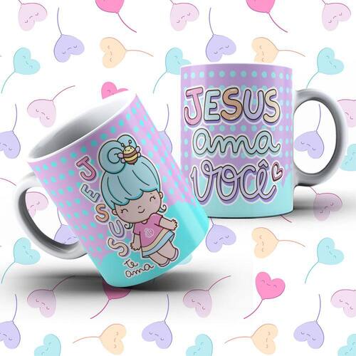 Caneca personalizada de porcelana de alto brilho, com interior e alça branca com linda Estampa Tema Evangelico.