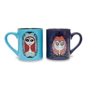 - O amor pode ser assustador: experimente os assustadores com estas xícaras de café com um mashup festivo de feriado. O par inseparável Jack e Sally aparecem como caveiras de açúcar nestas canecas roxas e azul-petróleo, respectivamente.