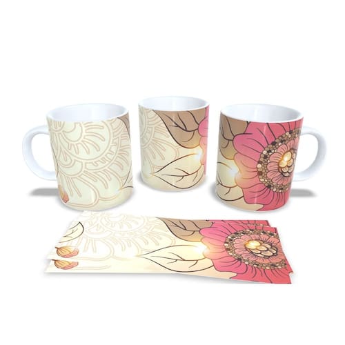 Caneca personalizada de porcelana de alto brilho, com interior e alça branca com linda Estampa da Coleção Flores.