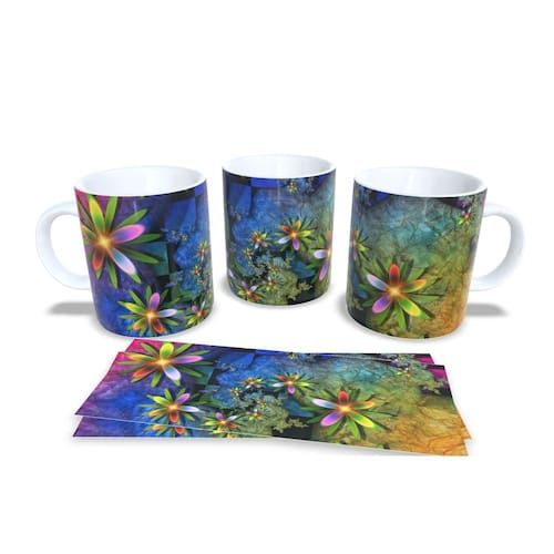 Caneca personalizada de porcelana de alto brilho, com interior e alça branca com linda Estampa da Coleção Flores.