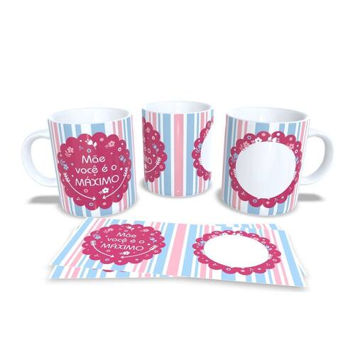 Caneca personalizada de porcelana de alto brilho, com interior e alça branca com linda Estampa da Coleção dia das Mães.