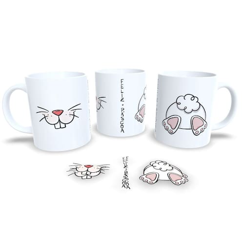 Caneca personalizada de porcelana de alto brilho, com alça e interior branca Coleção Páscoa.