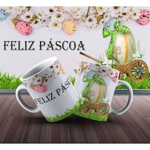 Caneca personalizada de porcelana de alto brilho, com alça e interior branca Coleção Páscoa.