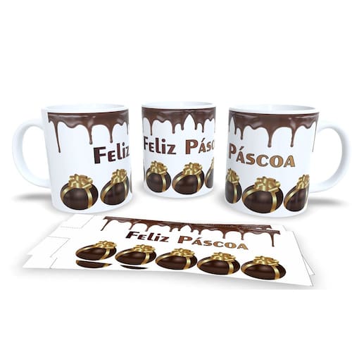 Caneca personalizada de porcelana de alto brilho, com alça e interior branca Coleção Páscoa.