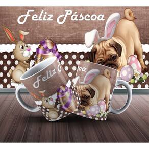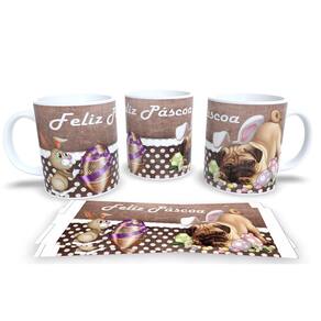 Caneca personalizada de porcelana de alto brilho, com alça e interior branca Coleção Páscoa.