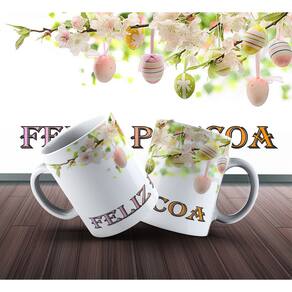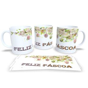 Caneca personalizada de porcelana de alto brilho, com alça e interior branca Coleção Páscoa.