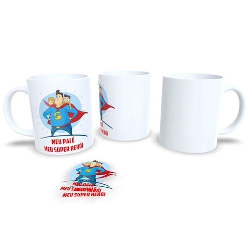 Caneca personalizada de porcelana de alto brilho, com interior e Alça branca Coleção dia dos Pais.