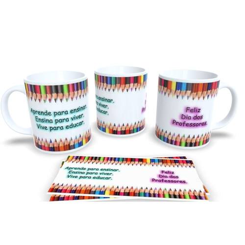 Caneca personalizada de porcelana de alto brilho, com interior e Alça branca Coleção dia dos Professores.