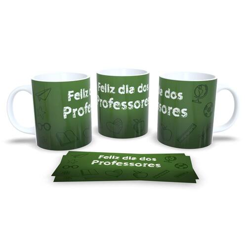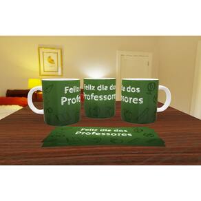 Caneca personalizada de porcelana de alto brilho, com interior e Alça branca Coleção dia dos Professores.
