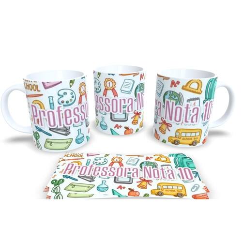 Caneca personalizada de porcelana de alto brilho, com interior e Alça branca Coleção dia dos Professores.